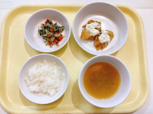 ごはん チキン南蛮 タルタルソース チョレギ風サラダ 味噌汁(大根なめこわかめ)