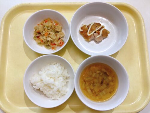ごはん 照りマヨチキン 切干大根の煮物 味噌汁(しめじ白菜)