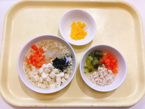 具だくさんうどん ささみと胡瓜の和え物 オレンジ