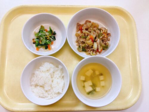ごはん 回鍋肉 ちんげん菜のナムル 大根のスープ(豆腐万能ねぎ)