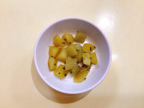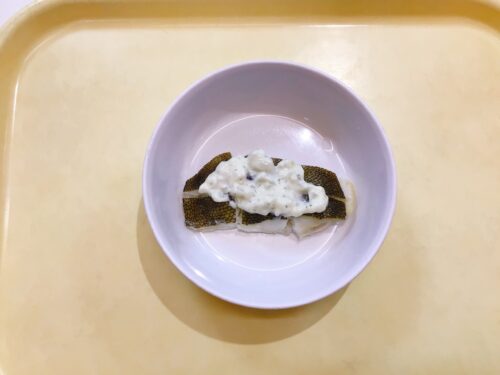 おかゆ たらの煮物 胡瓜のサラダ 豆乳味噌汁