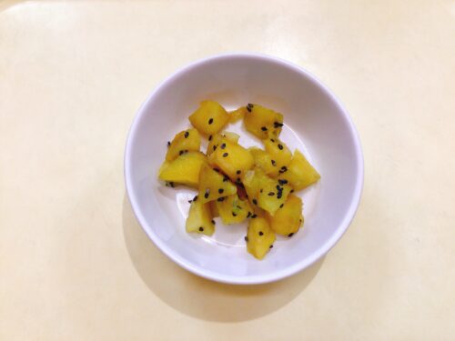 おかゆ たらの煮物 胡瓜のサラダ 豆乳味噌汁