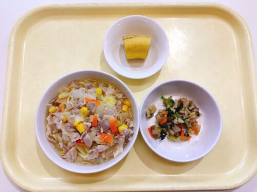 味噌ラーメン れんこんとしめじのごま和え バナナ