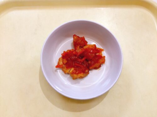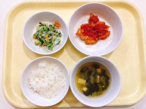 ごはん ヤンニョムチキン キャベツとしらすのサラダ 味噌汁(ほうれん草豆腐)
