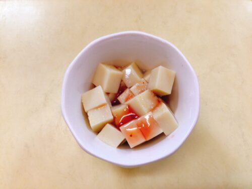 おかゆ 鶏肉と野菜の煮物 胡瓜の和え物 味噌汁 オレンジ
