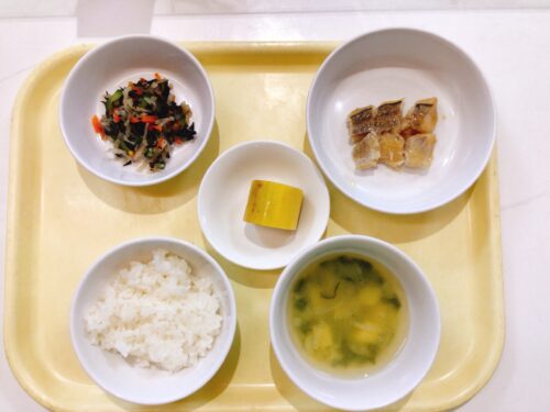 ごはん たらの煮付け 切干大根とひじきのサラダ 味噌汁(さつま芋長ねぎわかめ) バナナ