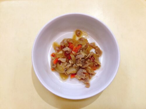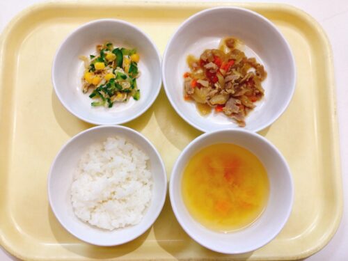 ごはん 豚肉の生姜焼 胡瓜の中華あえ 味噌汁(南瓜玉ねぎ)