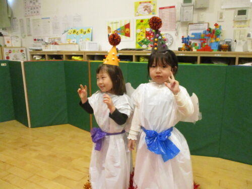 まずはみずほ組!自分たちで上手にセロハンテープを貼ったかわいい天使とかっこいいマントで登場してくれました💛