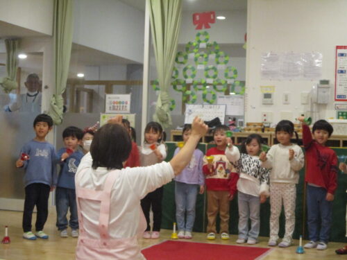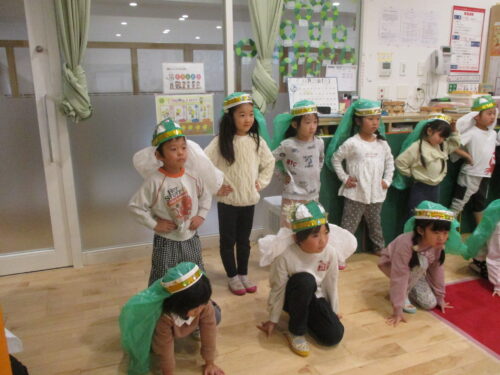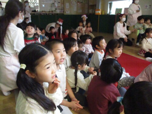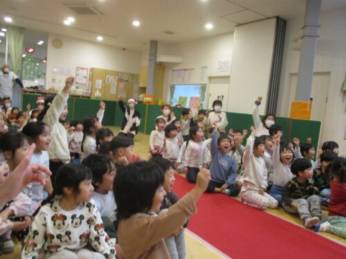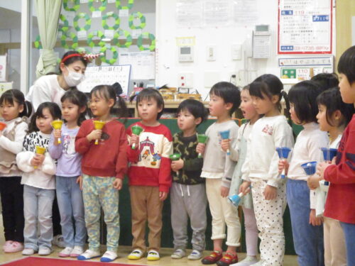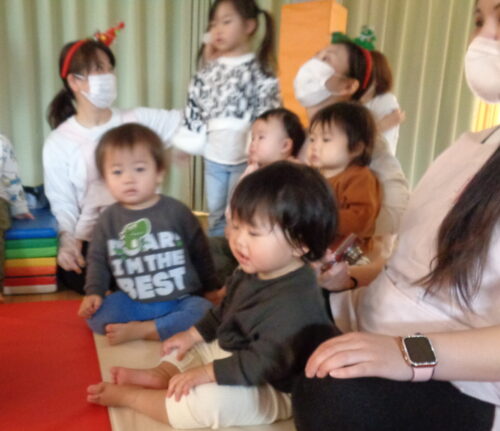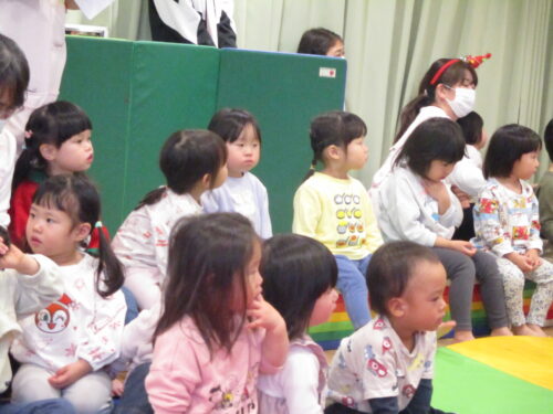 12月25日はクリスマス。みのりのわかば保育園でも『クリスマス会』🎄を開催しました。こだま組からつばめ組まで全員集合です。