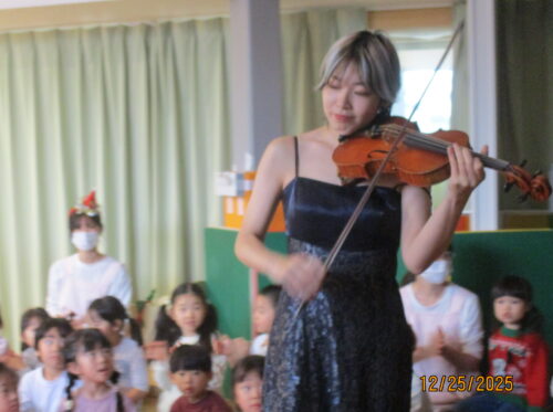 本年度は、プロのバイオリニストをお招きしてミニコンサートを開催しましたよ。