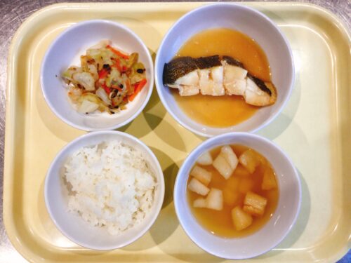 ごはん かれいの煮付け キャベツの塩昆布和え 味噌汁(さつまいも麩)