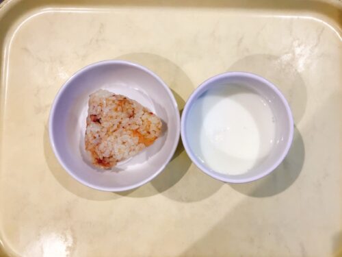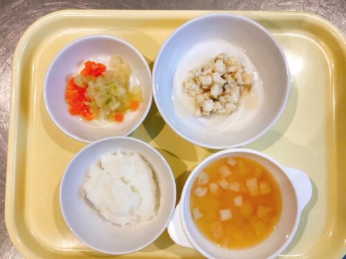 おかゆ たらの煮付け キャベツの和え物 味噌汁