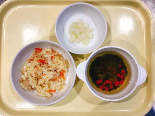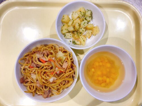 焼きそば 青のりポテト えのきのスープ(長ねぎコーン)
