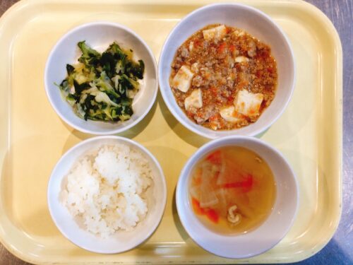 ごはん 麻婆豆腐 わかめの中華和え 大根スープ(鶏肉人参)