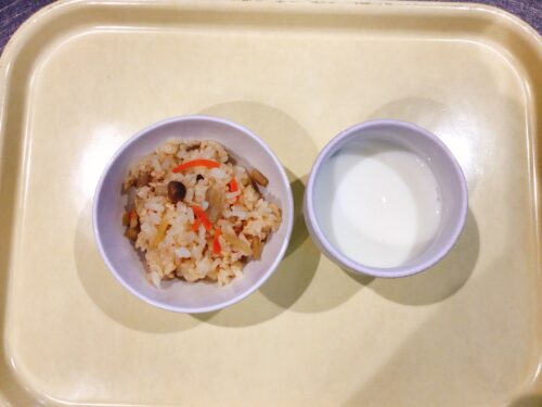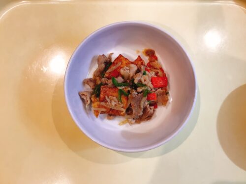 ごはん 豚肉と厚揚げの中華炒め 胡瓜の中華あえ 白菜のスープ(人参)