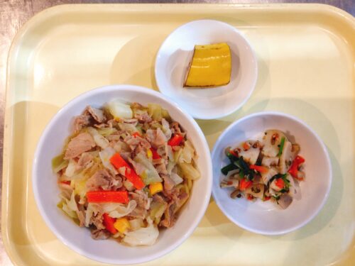 味噌煮込みうどん れんこんの和え物 バナナ