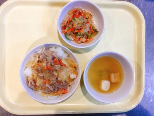 中華丼 春雨サラダ 味噌汁(じゃが芋麩万能ねぎ)