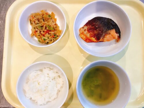 ごはん 鮭の照り焼き 切干大根の炒め煮 味噌汁(白菜ごぼうわかめ)