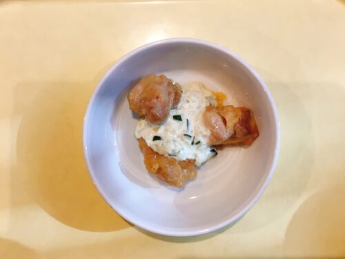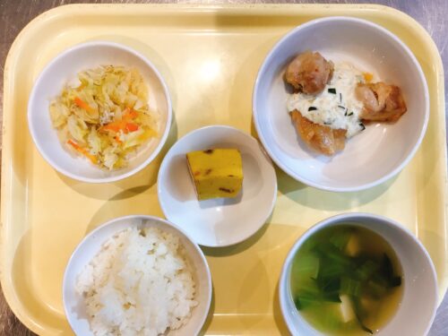 ごはん チキン南蛮 タルタルソース 大根としらすのサラダ 味噌汁(豆腐ちんげん菜) バナナ