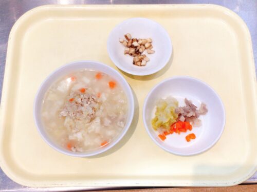 味噌煮込みうどん 蓮根と白菜のサラダ バナナ