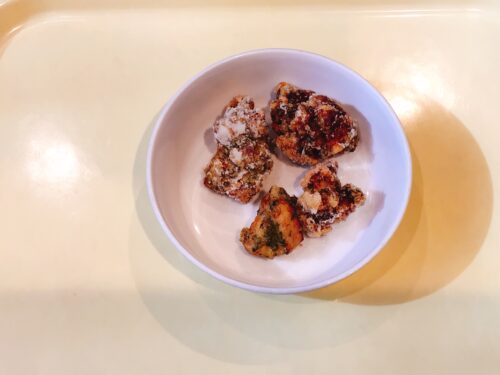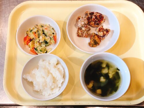 ごはん のり塩からあげ 納豆マヨサラダ 豆腐のスープ(玉ねぎわかめ)