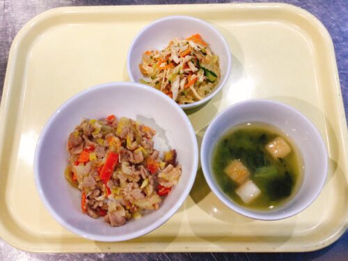 中華丼 バンサンスー 味噌汁(小松菜麩)