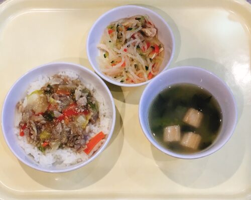 中華丼 バンサンスー 味噌汁(小松菜麩)