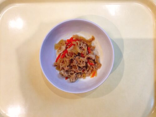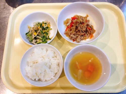ごはん 豚肉の生姜焼 胡瓜の中華あえ 味噌汁(南瓜玉ねぎ)