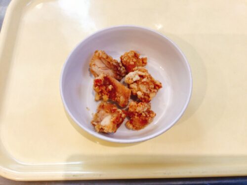 ごはん 鶏肉の唐揚げ 小松菜と油揚げのおひたし 味噌汁(大根ちんげん菜)