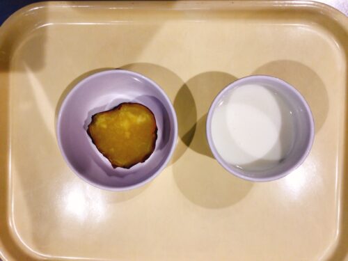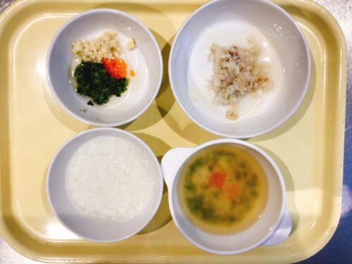 おかゆ たらの煮物 小松菜と高野豆腐のおひたし 味噌汁